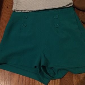 Cute high waisted green shorts! They look great on anyone! Super cute and comfy but can accessories! Great shorts.