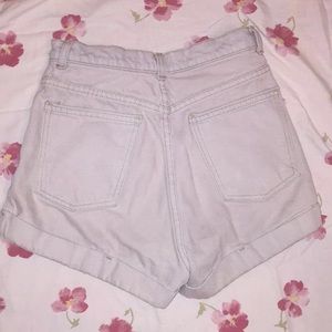 american apparel light blue jeans high waisted shorts. perfect for wearing crop tops and it's super cute!