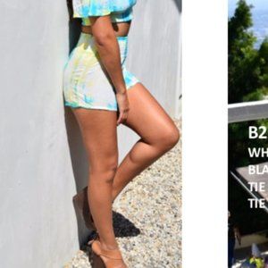 Blue & green Tie Dye Shorts, size M, 100% Rayon Smock waist band