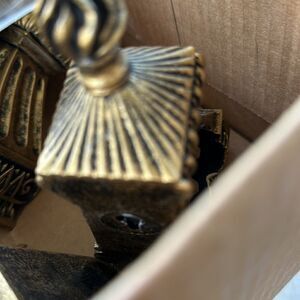 Scrolled detailed corbels for curtain or swag use in gold/black in good condition.