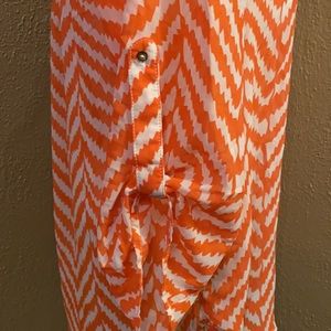 Gently worn, no signs of wear. Sheer material, will need to wear a tank or cami underneath. Sleeves have functional buttons to make full or 3/4.