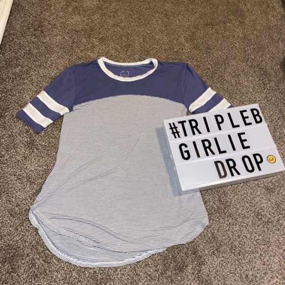 High/Low Blue Striped Top with Jersey detailing on sleeves