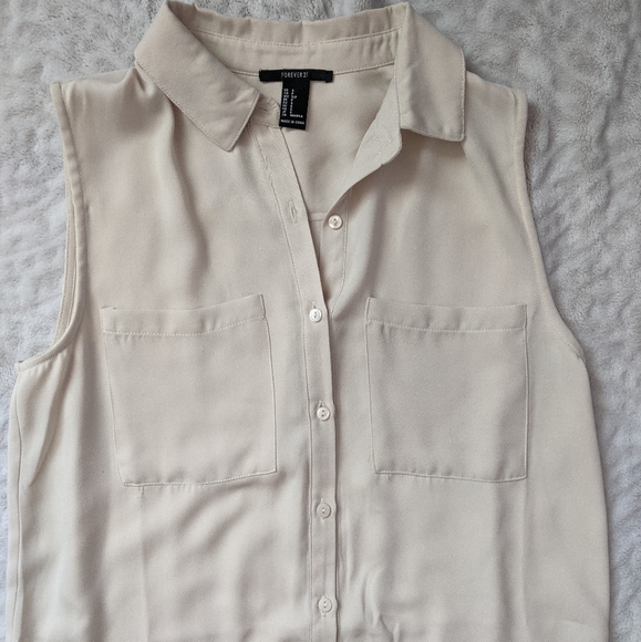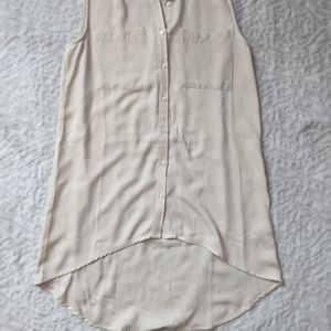 This is a high-low styled shirt, it is long and lightweight :) never worn before, the buttons can be done and undone all the way from top to bottom. Also sleeveless