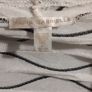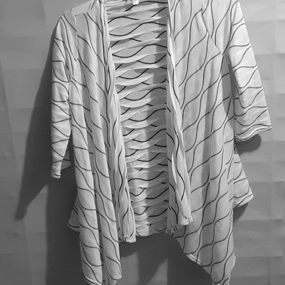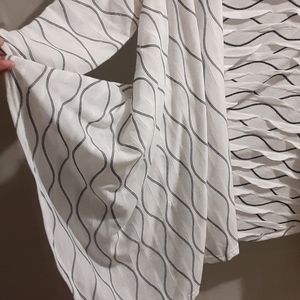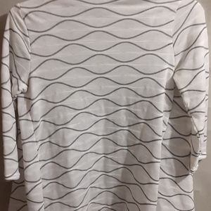 White with swirl design, wavy high low cut, quarter sleeve, super cute and gently used. Like new.