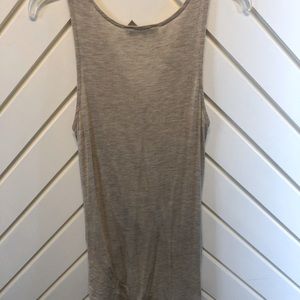 Such a cute basic tank! Oatmeal colored. Fabric naturally drapes in an elegant way! Short in the front and longer in the back. Could be worn with so many different looks! Excellent condition (only worn once). Originally purchased from a local boutique. Smoke free home!