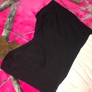 This is a black and baby pink high-low dress with a shorter slip underneath.