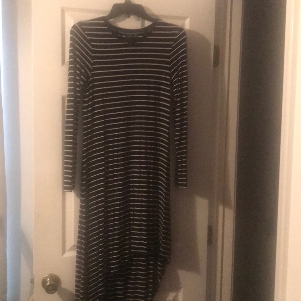 Kaari Blue black and white striped long sleeve dress.