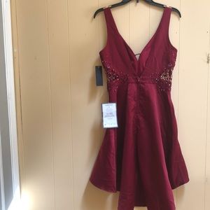Formal high-low red dress. Gorgeous! Super flattering when worn. A silky material. Lace on the sides.