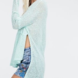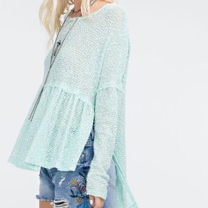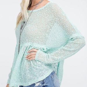 Color: Mint Green, Loose and Oversize Fit, Open Side Slits, Ruffle/Pleated Front, Thin and Sheer Material, High-Low Detail, Round Neck, 56% Polyester, 44% Rayon