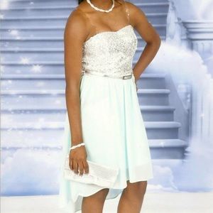 High-Low Sequin Dress in a Light Teal Color