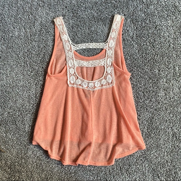 Adorable soft orange tank top with lace straps and back. Very light and flowy. High-Low style
