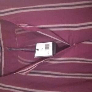 * Long Sleeves * High-Low * Pinstripe Pattern * 100% Rayon * Color: Bordeaux(Burgundy/Tan)