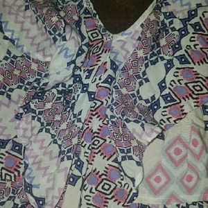 Geo Print, Ruffled Bust & Down Middle, Scrunchy Upper Back, Flowy Bottom