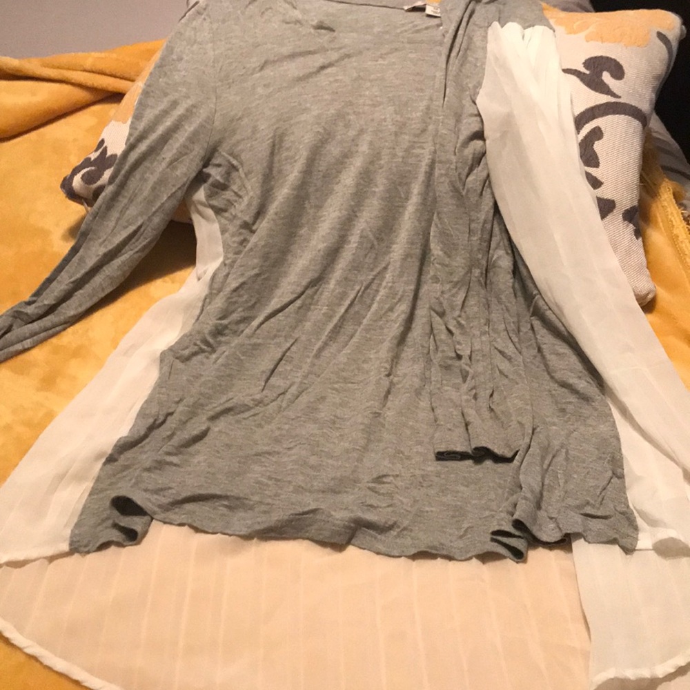 Stretchy tshirt material in the front white pleated sheer material in the back