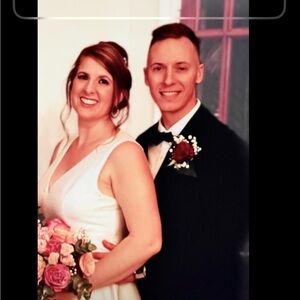 High-Low wedding Dress, Calvin Klein with sewn in wedding bling accessory (the accessory alone was 150$) real rhinestone and so classic and tasteful