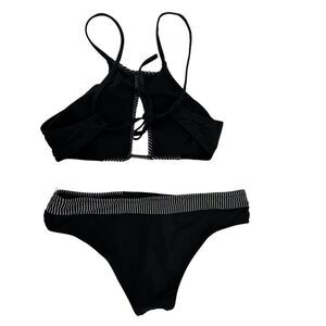 High Neck Bikini Set Black Keyhole Women's Size Large Swimwear Classic Stripe Detail C Apparel Brand