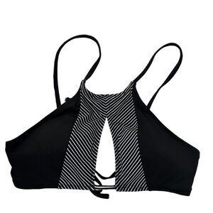 High Neck Bikini Set Black Keyhole Womens Large Swimwear Stripe Detail C Apparel