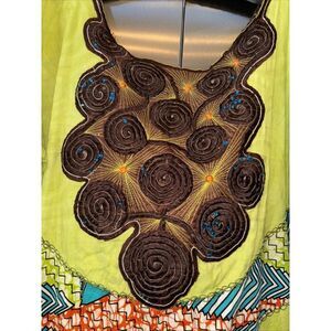 Handmade women midi dress side slit cotton embroidered throughout patchwork short ruffle sleeve Pit over size XL Pit to pit 23 Length 54 waxhaus guaranteed super wax nouvo green orange aqua colorful print