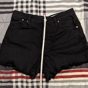 Michelle by Commune high-rise black short shorts with raw edge and button up fly. Stretchy. 92% Cotton. Used but in good condition. Smoke-Free but pet friendly home
