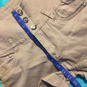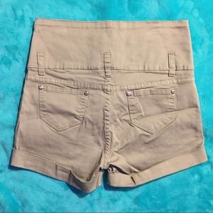 High rise stretchy khaki shorts.