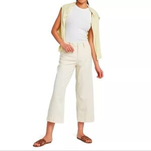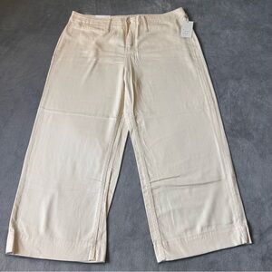 High-Rise Wide-Leg Crop Cream/Ivory Pants - Womens Size 16- Relaxed Fit, Stretch