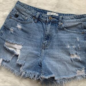 High Rise Cutoff Shorts Denim Distressed Ripped Kancan Size Medium Destroyed