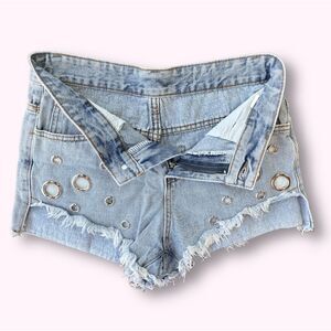 High Rise Cutoff Denim Shorts Grommets Sz 27