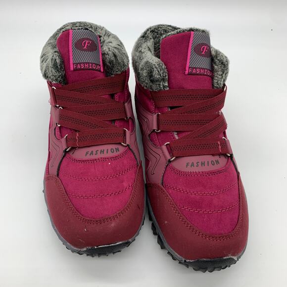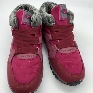High-Top Boot Size 8 Burgundy & Purple Faux Fur Lined Fashion Shoes