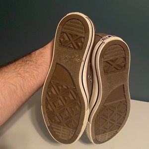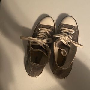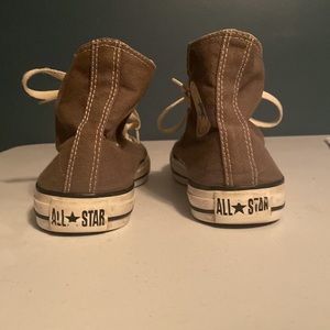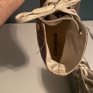 Nice pair of nicely worn grey high-top og style converse. Size 8.5 Mens. No physical flaws or defects. Minor use. 8/10 condition.