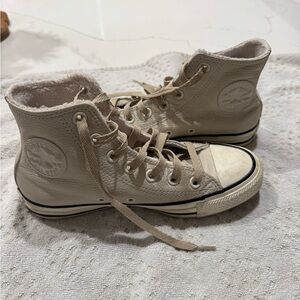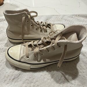 Classic Converse high-tops in white. Features a comfortable fit and iconic design. Fleece interior.