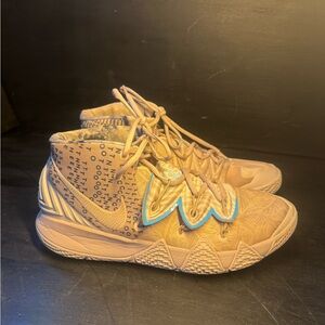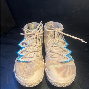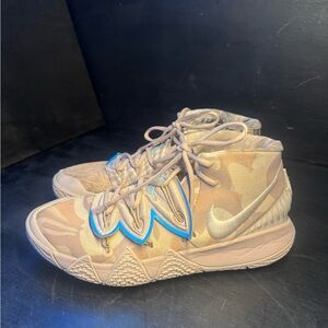 Stylish and comfortable high-top sneakers for kids. Featuring a unique tan design with blue accents, these shoes are perfect for everyday wear.