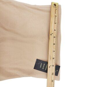 No visible flaws. Top to bottom = 14 inches. Waist = 10 inches (unstretched).