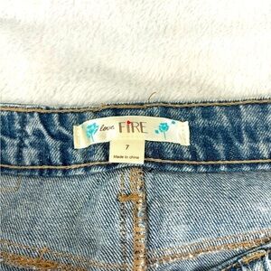 High‑Waist Distressed Denim Skirt – Raw Hem A‑Line Mini – Size 7
