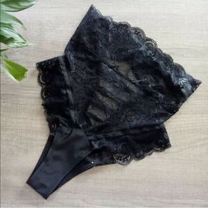 High Waist Lace Briefs Panties Underwear Lingerie black medium NEW lace back