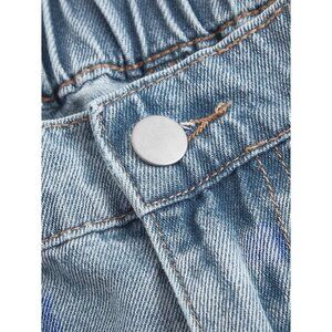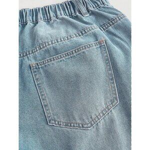 Features: Comfortable elastic waistband for easy on and off, plus a loose, wide-leg silhouette that makes a statement. Classic light blue wash denim pairs well with sneakers, boots, or even sandals. Perfect for casual days or when you want a laid-back but stylish look.