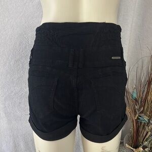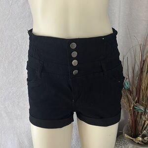 Elevate your style with these chic high-waisted black shorts. Featuring a stylish button-up front, these shorts are perfect for any casual outing. Enjoy comfort and fashion in one with this versatile piece.