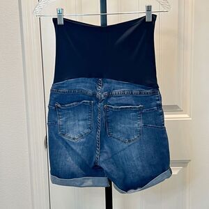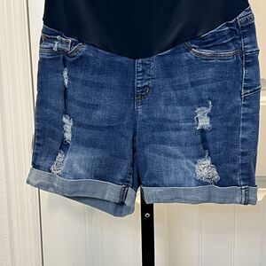Elevate your casual style with these high-waisted distressed blue jean shorts. Perfect for a chic, laid-back look.