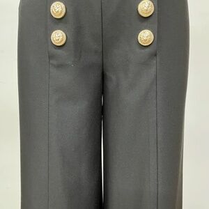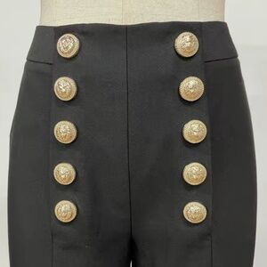 The striking double row of gold buttons adds a touch of sophistication and nautical charm, instantly elevating any outfit from simple to standout. Designed with a sharp front crease and wide-leg cut, these pants move with grace and authority – perfect for business meetings, brunches, or evening soirées.