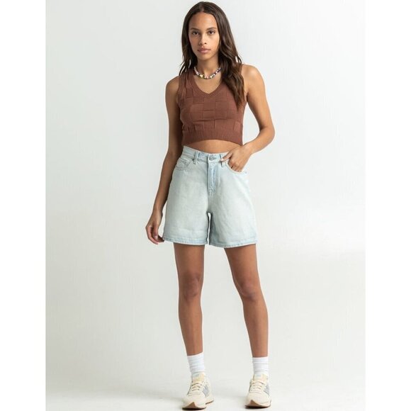 These light wash denim shorts from RSQ By Tilly’s offer a blend of style and comfort. Designed with a high-waisted fit, they bring a classic look to casual wear. The rolled cuff detail adds a modern touch, making them versatile for various settings. The medium size ensures a comfortable fit, ideal for warm days.