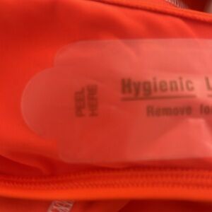 Stylish high-waisted bikini bottoms in vibrant orange with white accents. Perfect for a bold beach look.