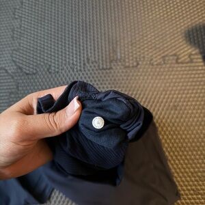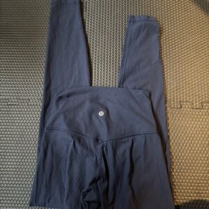 Stylish high-waisted ribbed leggings in a navy blue color. Perfect for workouts or casual wear.