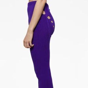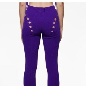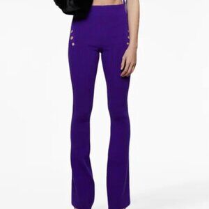 high-waisted button-detail trousers from Jean Paul Gaultier featuring electric purple, merino wool blend, high waist, decorative button detailing and flared.