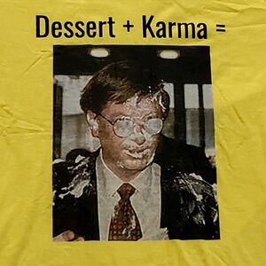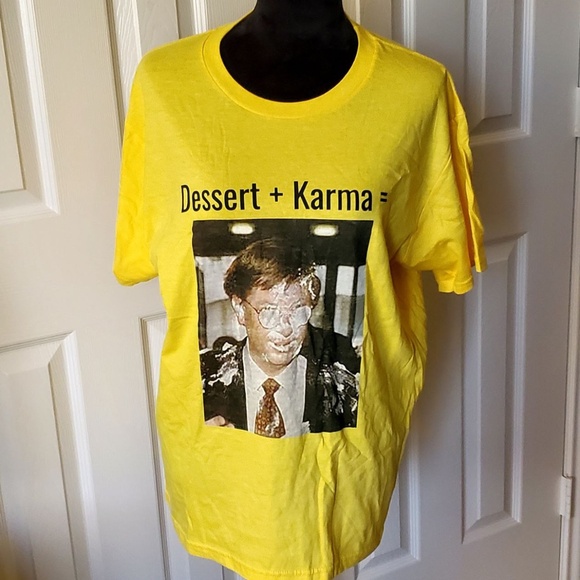 Make a statement...nobody is immune to karma, and some people just look better with a lemon cream pie facial, especially this guy. Large size and style fits both men and women, cotton.