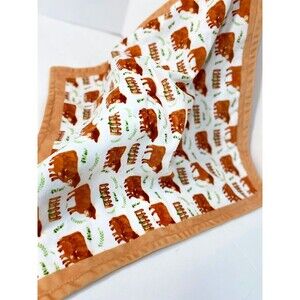 This Highland Cow Security Blanket is a perfect addition to any baby girl's nursery. The multicolor floral design is sure to bring a smile to any child's face. Soft and cozy, this blanket is perfect for snuggling and providing comfort to your little one. Measuring at a size that is suitable for babies, this blanket is also great for on-the-go use or as a decorative piece in your baby's room. The Highland Cow character adds a playful touch, making it a great gift for any baby shower or new parent.