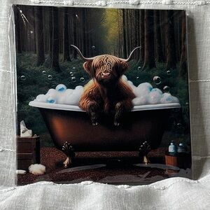 Highland Cow Bubble Bath Canvas Art Wall Hanging Canvas NWT Gifts 8.5"x8.5"x.75"