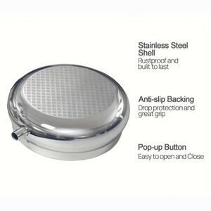 Round Stainless Steel Metal Tin with Inside compartment split into 2 sections.