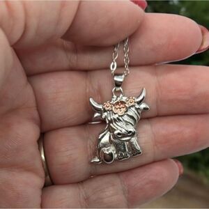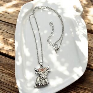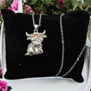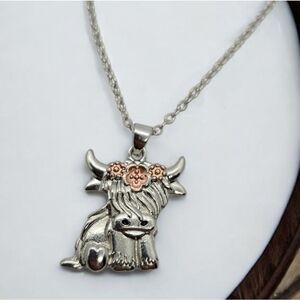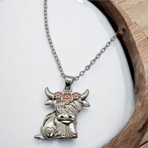Highland Cow Flower Necklace Jewelry Rustic Boho Scottish Bovine Pendant Chain