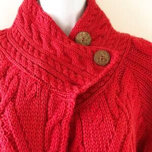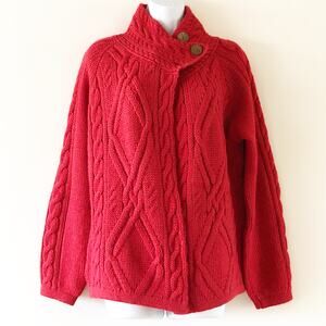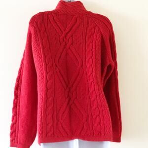 Highland Home Industries Medium Red Sweater Fishermans Cable Knit Wool