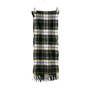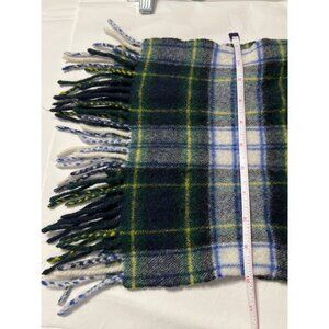 Highland Tweeds Lambswool Plaid Scarf From Scotland 10" x 56" Blue Green White