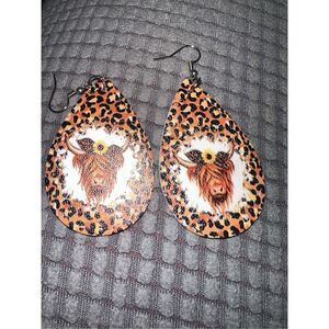 Highland Cow Cheetah Teardrop Earrings